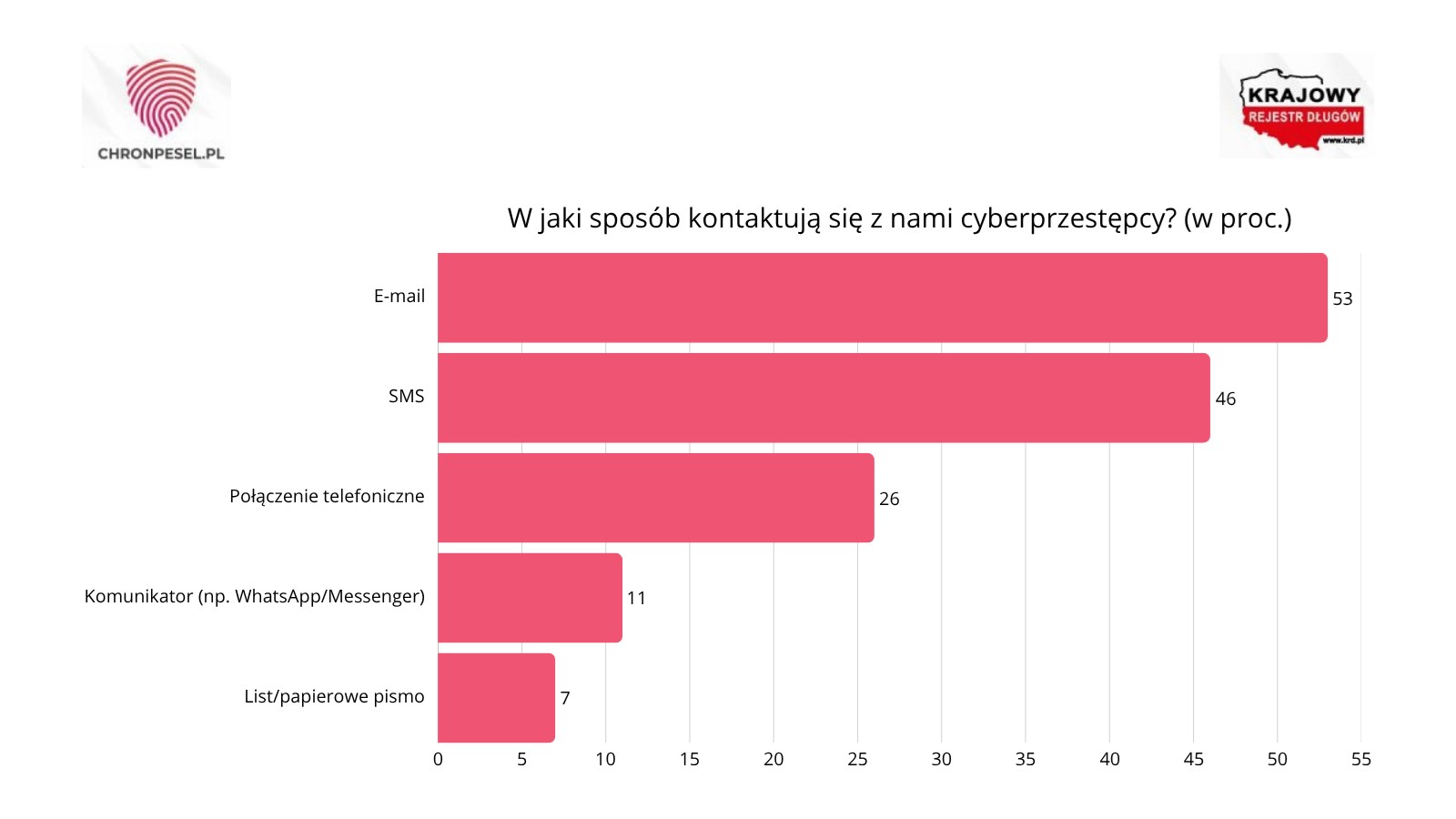Oszuści starają się też dotrzeć do potencjalnych ofiar za pomocą różnych form kontaktu. Ponad połowa Polaków, którzy w ciągu ostatnich 12 miesięcy otrzymali podejrzaną wiadomość lub telefon od instytucji publicznej, deklaruje, że był to e-mail (53 proc.). Równie często cyberprzestępcy sięgają po SMS-y (46 proc.), a nieco rzadziej wykorzystują połączenia telefoniczne (26 proc.). Komunikatory, takie jak WhatsApp czy Messenger, pojawiają się jedynie w 11 proc. prób oszustw.