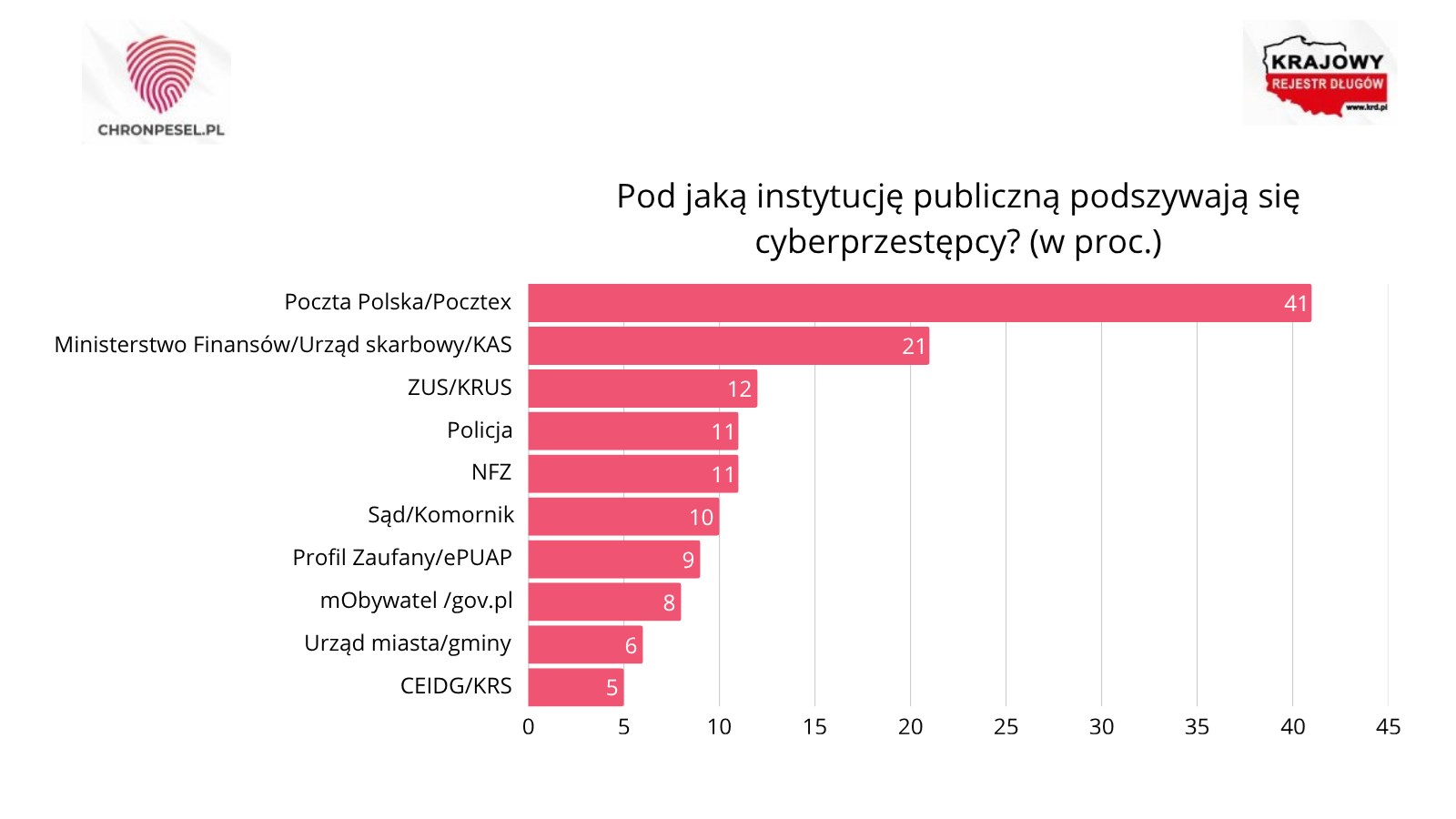 Podszywanie się pod fiskusa jest dziś jednym z najczęściej wykorzystywanych scenariuszy oszustw, ustępując jedynie wyłudzeniom opartym na wizerunku Poczty Polskiej. To pokazuje, że cyberprzestępcy celowo sięgają po instytucje, z którymi Polacy mają w danym momencie najwięcej kontaktu i które budzą największe zaufanie. W dalszej kolejności w takich fałszywych komunikatach pojawiają się także: ZUS i KRUS (12 proc.), policja i NFZ (po 11 proc.), sąd lub komornik (10 proc.), Profil Zaufany i ePUAP (9 proc.), usługa mObywatel (8 proc.) oraz urząd miasta lub gminy (6 proc.).